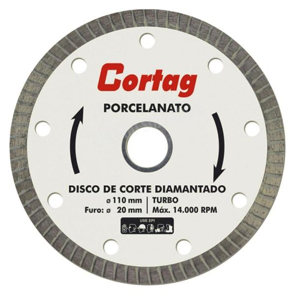 O Disco Diamantado Porcelanato 110mm Furo de 20mm Cortag é ideal para uso em Porcelanato e Cerâmica.