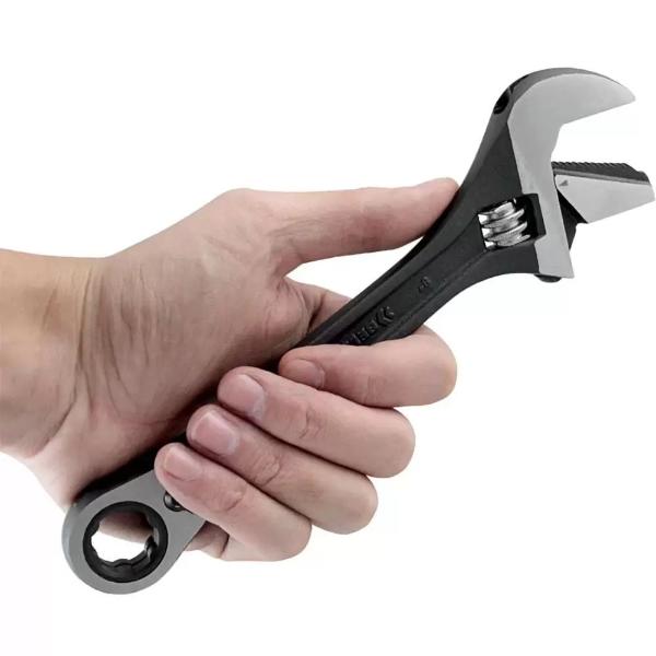 - Possui mandíbula reversível para usar como: chave ajustável e chave de cano