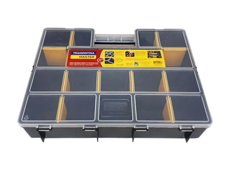 Manter as ferramentas organizadas e facilitar o transporte das peças de um lado para o outro é a finalidade dos organizadores plásticos da Tramontina Master. Indispensável para quem gosta de deixar as ferramentas sempre em ordem, os organizadores também são ideais para guardar artigos de pesca, entre outros acessórios. Porque não basta ter a ferramenta certa, é preciso ter ela sempre à mão.